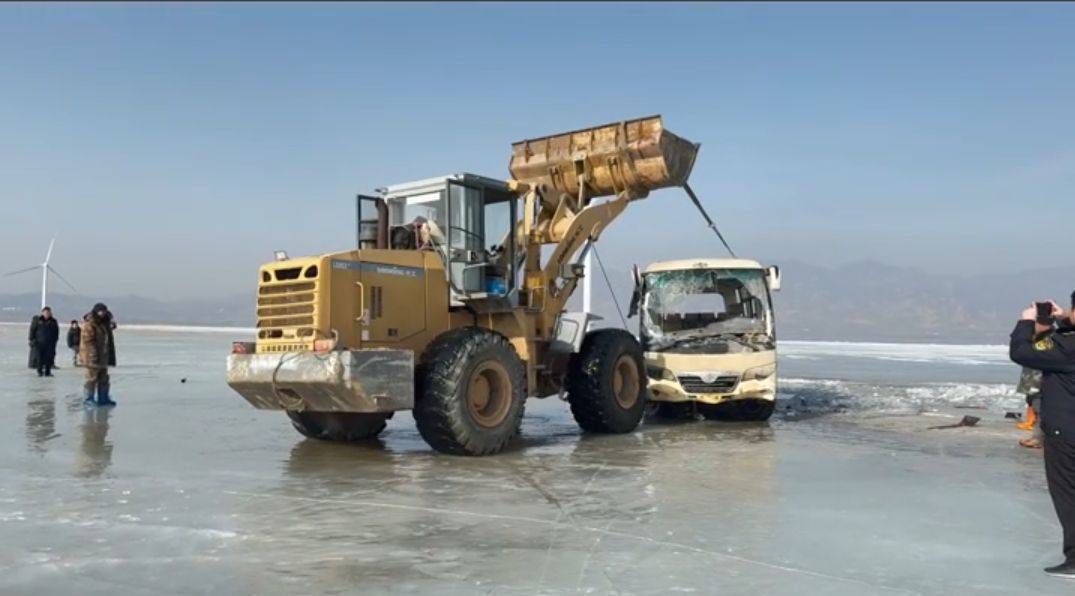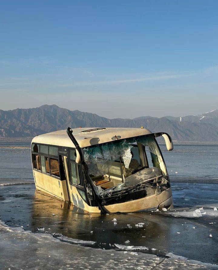 河北怀来县官厅水库被冰面冻住的网红巴士被有关部门移走(图片来源于网络)
